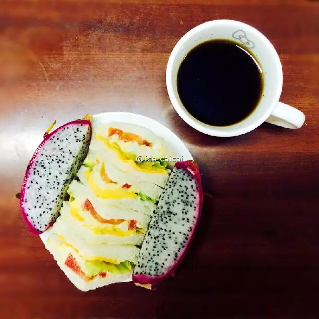 番茄蛋芝士三明治+火龙果+美式咖啡
