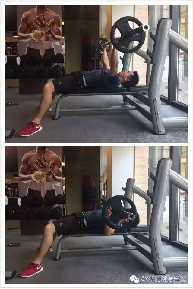 平板卧推,背部需要贴紧